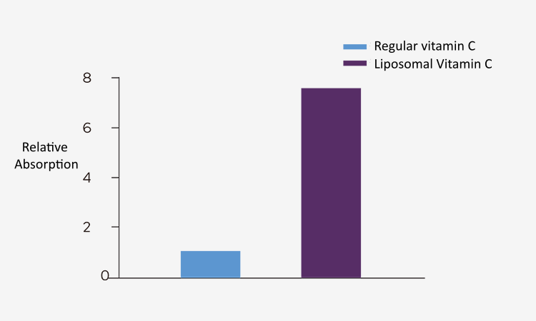 Comparée à la vitamine C classique, la vitamine C liposomale présente une absorption relative environ huit fois supérieure.